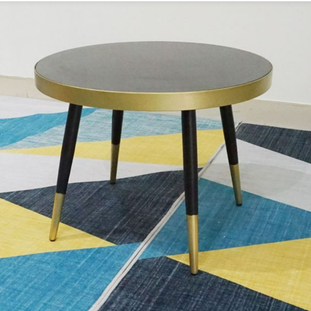 Bàn Sofa CONE 4 chân mặt kính TT07 thiết kế đơn giản với mặt kính tròn 60cm đen cường lực bao ngoài là hệ sắt dày 10mm sơn màu vàng đồng và hệ 4 chân vuốt côn sơn đen với đầu vuốt cốn ơn vàng đồng rất sang trọng, mẫu bàn sofa Cone rất phù hợp với nhiều loại Sofa và không gian phòng khách, có thể dùng làm bàn cafe sang trọng.